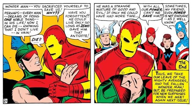 Magnum morre nos braços do Homem de Ferro em cena da HQ The Avengers #9 - Reprodução/Marvel