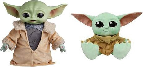 Pelúcia Grogu com Armadura, da Mattel, e Pelúcia Grogu Big Feet, da Fun, disponíveis na Amazon