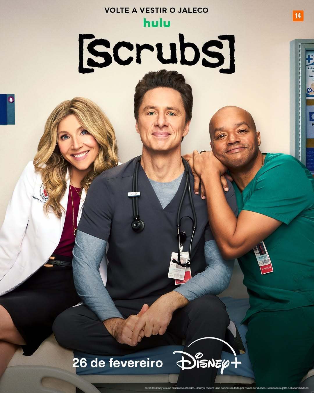 São Paulo, BRASIL (24 de fevereiro de 2026) – O Disney+ apresenta o trailer da primeira temporada do revival da aclamada série de comédia Scrubs. Ambientada nos dias de hoje, a série reúne o elenco original com uma nova geração de internos para trazer mais risadas e momentos emocionantes. A série estreia em 26 de fevereiro com seus dois primeiros episódios, exclusivamente no Disney+. Em seguida, um novo episódio será lançado toda quinta-feira. As nove temporadas da comédia original estão disponíveis no Disney+.