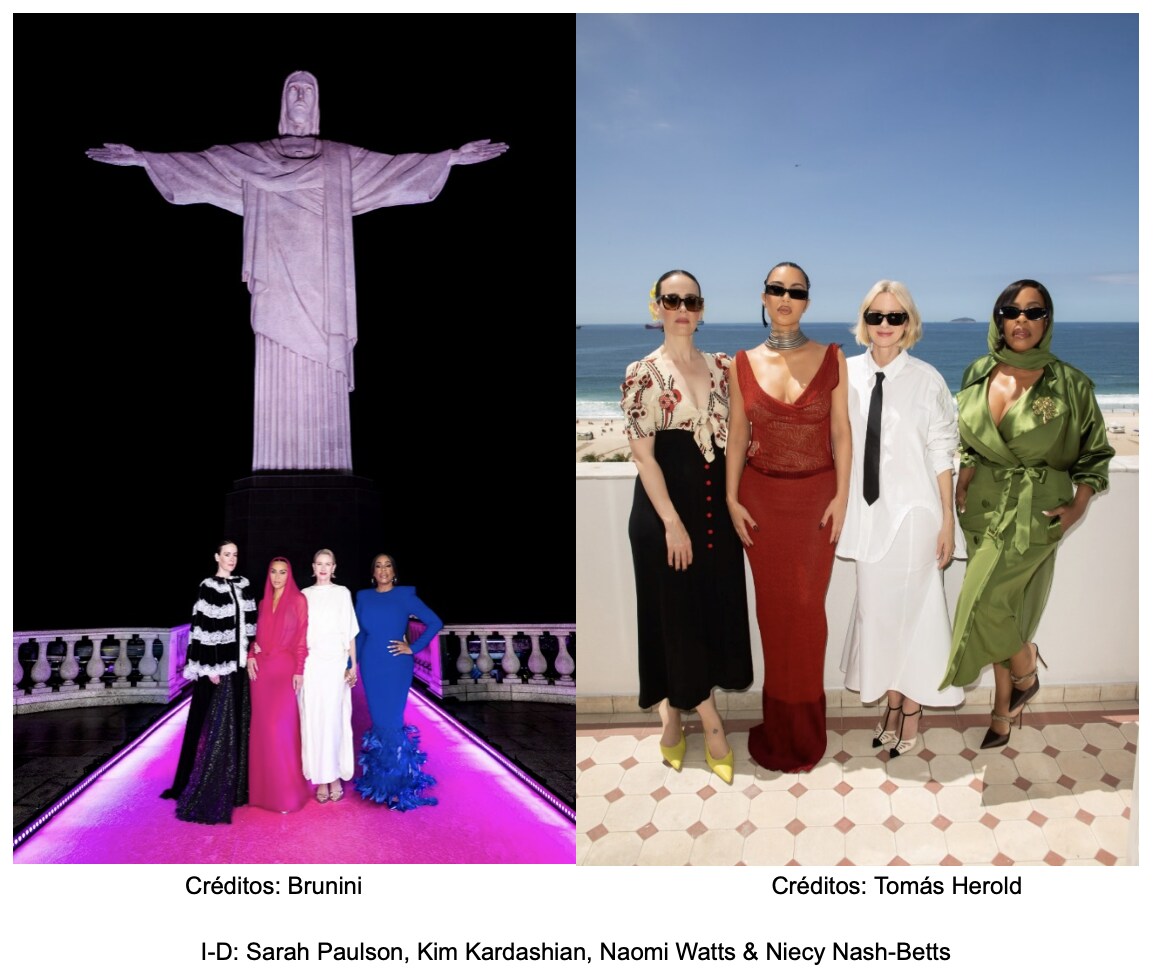 Kim Kardashian, Naomi Watts, Niecy Bash-Betts e Sarah Paulson também visitaram o Santuário Cristo Redentor, posando em um tapete rosa para uma sessão de fotos ao lado do icônico monumento e da vista deslumbrante da cidade carioca.