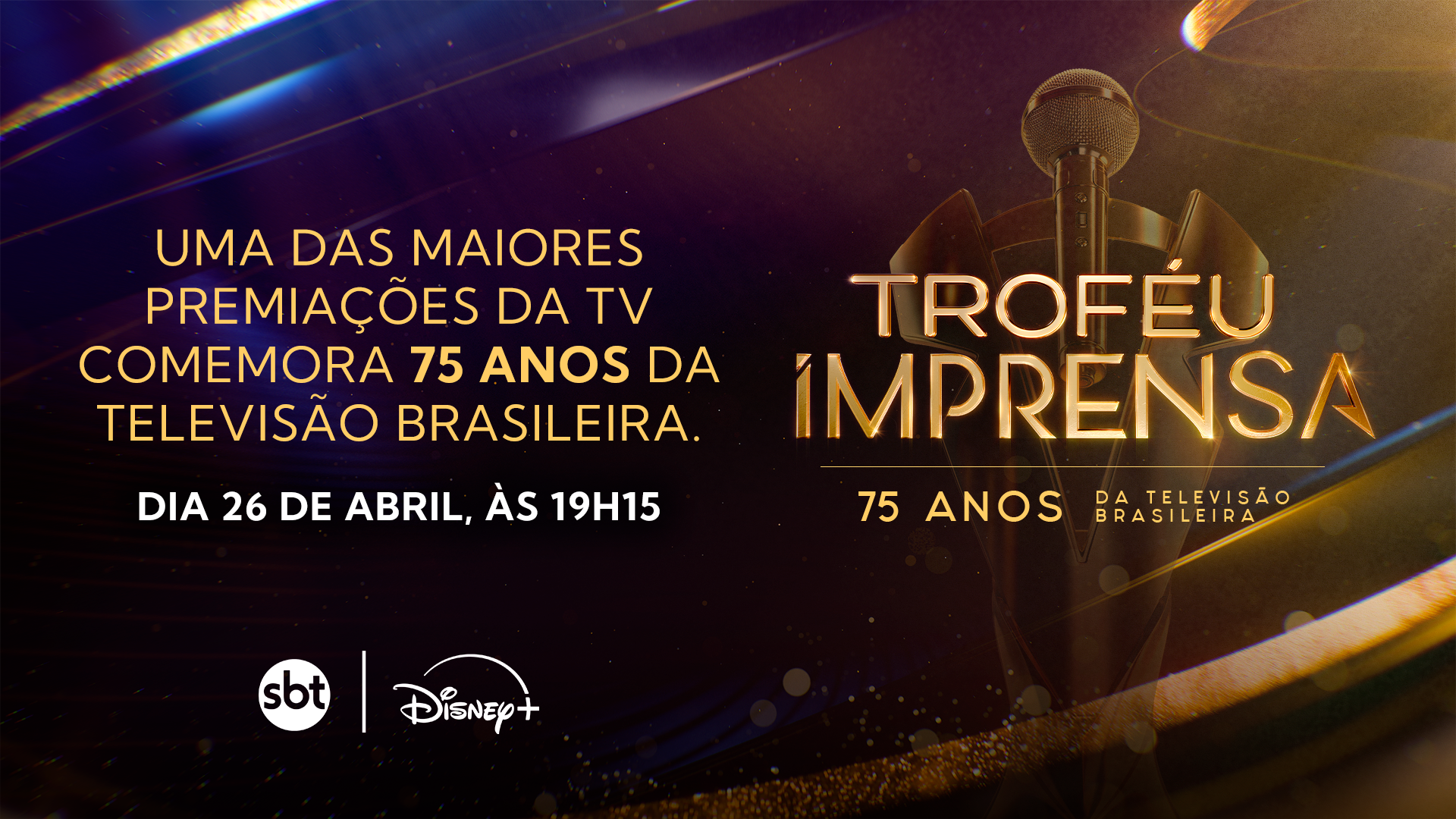 A consagrada premiação do Troféu Imprensa, que há mais de meio século reconhece os maiores destaques da televisão e do entretenimento brasileiro, chega à sua 56ª edição e continua com a parceria com o Disney+. A cerimônia, que integra as comemorações pelos 75 anos da televisão brasileira, será exibida no próximo domingo (26), às 19h15 (de Brasília), com transmissão simultânea pelo SBT e Disney+, trazendo novo cenário, estatuetas e categorias para celebrar a nova fase. Além de entrevistas exclusivas durante os intervalos, o Disney+ disponibilizará o evento por três semanas na plataforma.