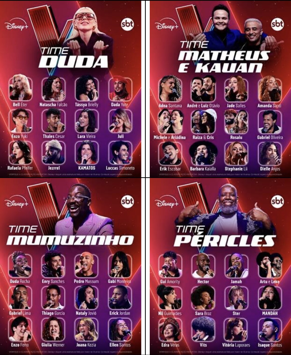A fase das Batalhas chega com 48 participantes selecionados nas Audições às Cegas. Veja como ficaram os times: